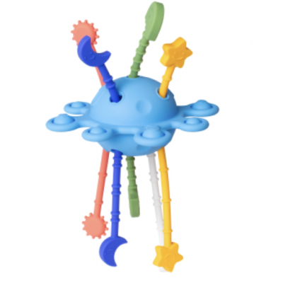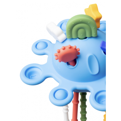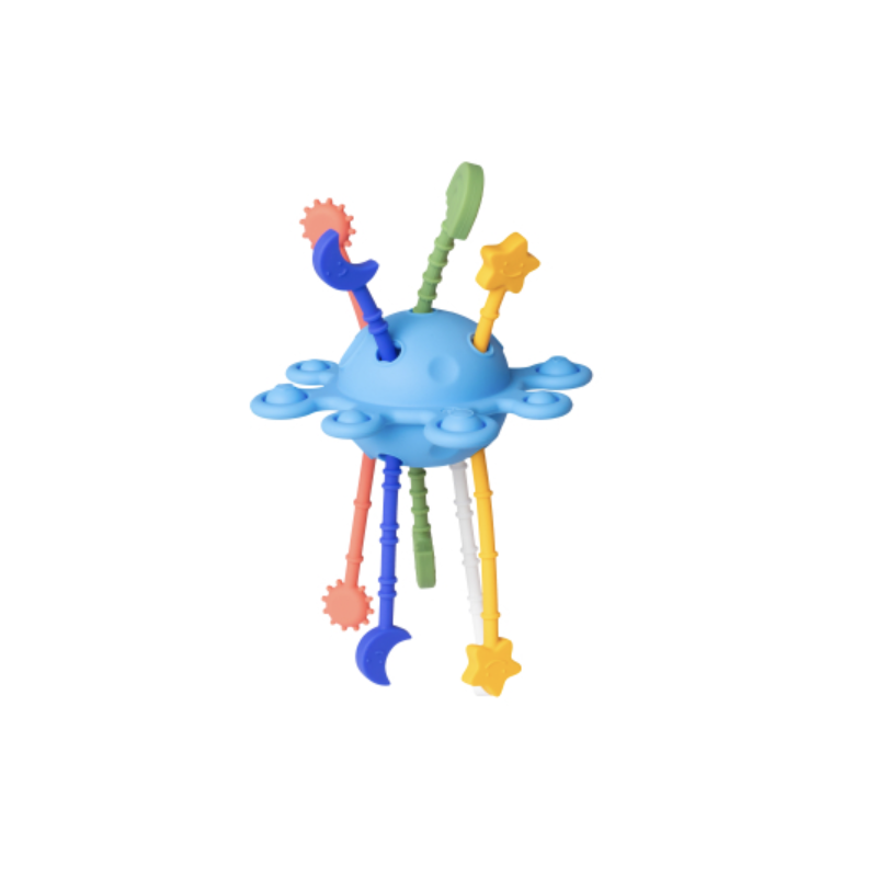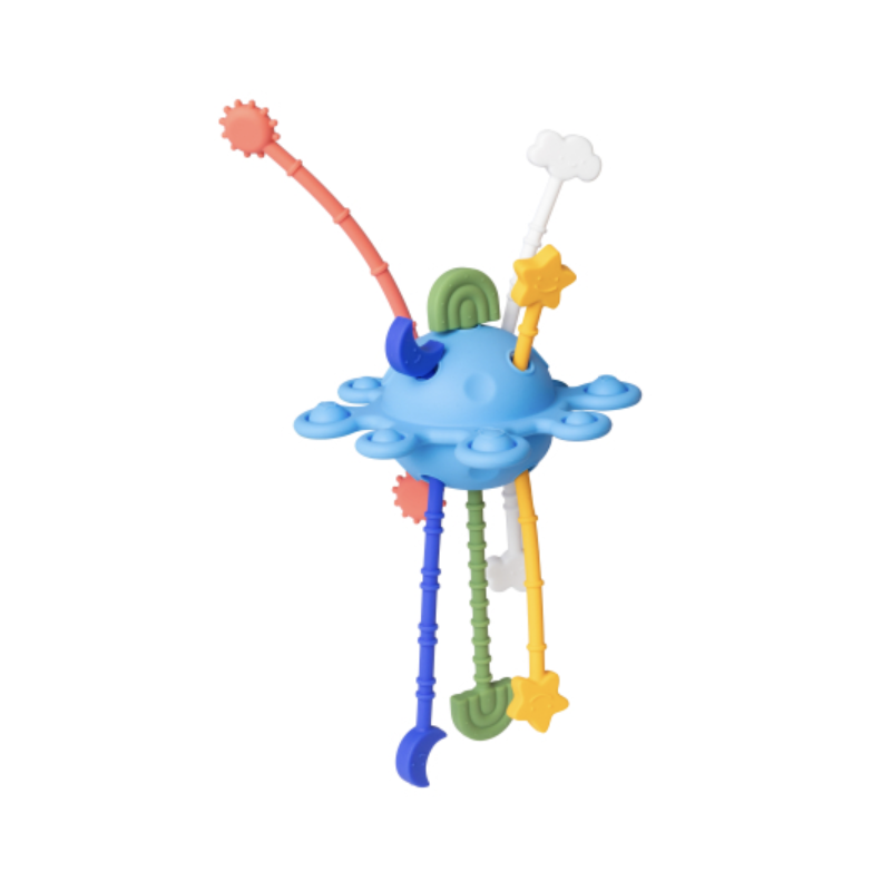 Planète Multicolore de Little L, offre une expérience sensorielle unique ! La planète bleue est dotée de 5 cordons texturés en matière douce et flexible de couleurs et formes différentes. Et quand bébé tire dessus dans un sens ou dans l'autre, il fait l'expérience d'une variété de sons et de vibrations. Elle est également dotée de poignées faciles à prendre en main et de Pop-it sur lesquels l'enfant peut appuyer. Captive et stimule les sens (toucher, vision, ouïe), la dextérité manuelle et la coordination œil-main. Ce jouet est en 100% silicone alimentaire, une matière douce, souple et sûre, naturellement sans BPA.