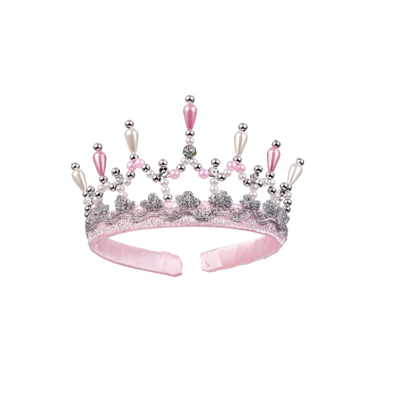 Couronne Mary. Le design s'inspire d'une couronne de la reine Máxima. Cette couronne de princesse de luxe est fabriquée à la main et ornée de perles et de perles d'argent. Dimensions : 13x13x8cm.