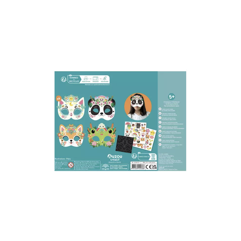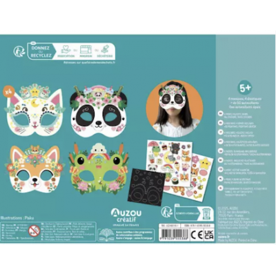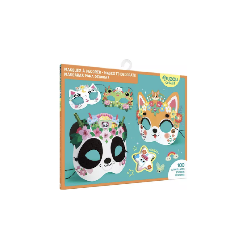 Découvre dans cette magnifique pochette 4 superbes masques Kawaii à décorer avec 100 autocollants. Chat kawaii ou panda, quel animal incarneras-tu pour le carnaval ?