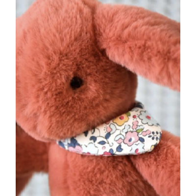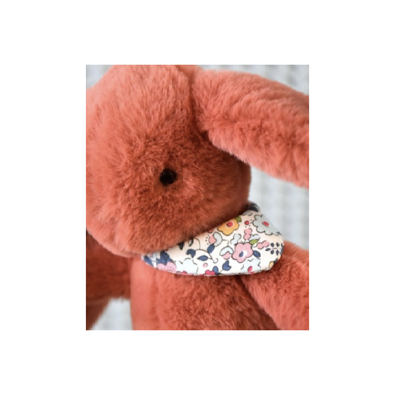 Offrez un cadeau intergénérationnel avec ce Lapin en peluche Terracotta de la collection LapinFleurette. Ultra-doux et élégant avec son bandana fleuri, il apporte douceur et réconfort à tous, favorisant un attachement durable. Pour adulte ou enfant, cette peluche est une idée cadeau originale.