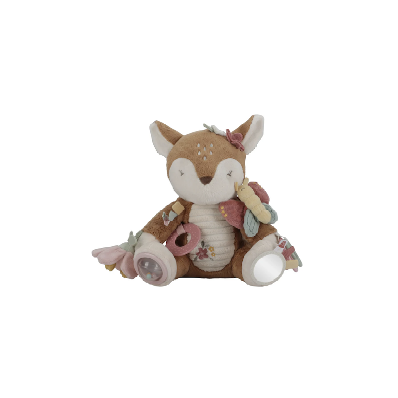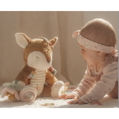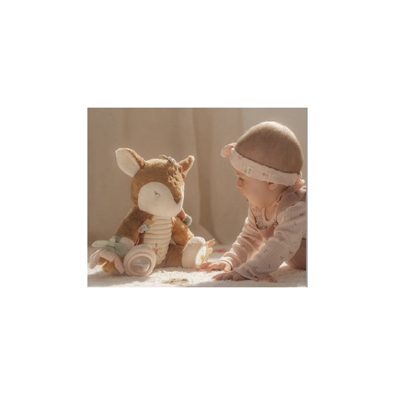 Cet adorable faon en tissu est bien plus qu’une simple peluche : il regorge de surprises sensorielles pour éveiller la curiosité de bébé dès la naissance.