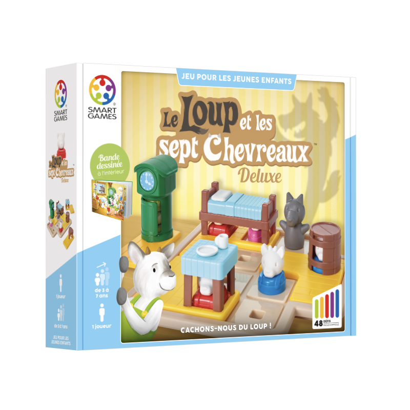 Ce jeu amusant aide les enfants de 3 à 7 ans à développer leur logique et leur esprit de déduction, ainsi que leurs capacités d’orientation et de reconnaissance des formes. Résolvez les 48 défis et plongez dans l’histoire du loup et des chevreaux avec le magnifique livre illustré inclus.