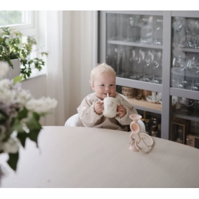 La tasse est fabriquée en silicone de qualité alimentaire à 100 % et est équipée d'un couvercle amovible et d'une paille douce pour les gencives et les premières dents de bébé.