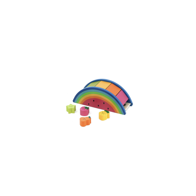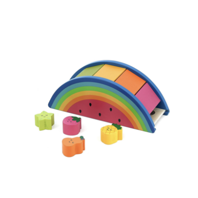 Avis aux gourmandes et aux gourmands ! Voici notre pastèque encastrement en bois dessinée avec originalité par Andy Westface. Cette jolie boîte à formes et ses 4 fruits (poire, ananas, carambole et fraise) vont développer logique et dextérité chez les petit(e)s. Le petit plus ? Chaque fruit ne peut rentrer que dans son emplacement, ce qui va faire travailler patience et concentration !
