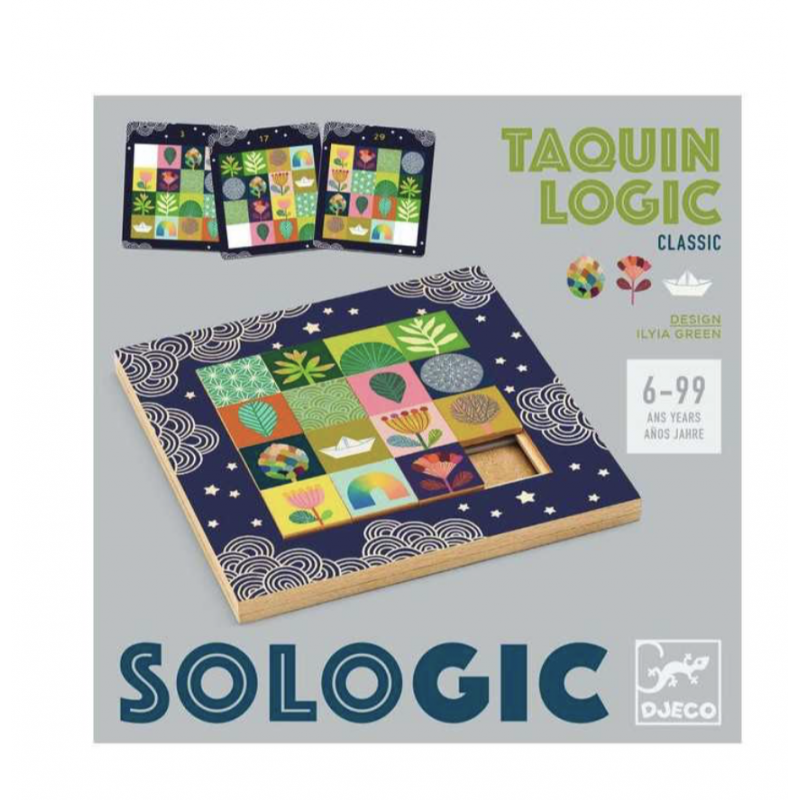 Découvrez Taquin Logic de la collection Sologic de Djeco, un jeu de logique traditionnel en bois pour les enfants dès 6 ans. Un casse-tête dont le but est de reproduire fidèlement l'image de la carte "Défi" sur le plateau de jeu en manipulant habilement les pièces mobiles.