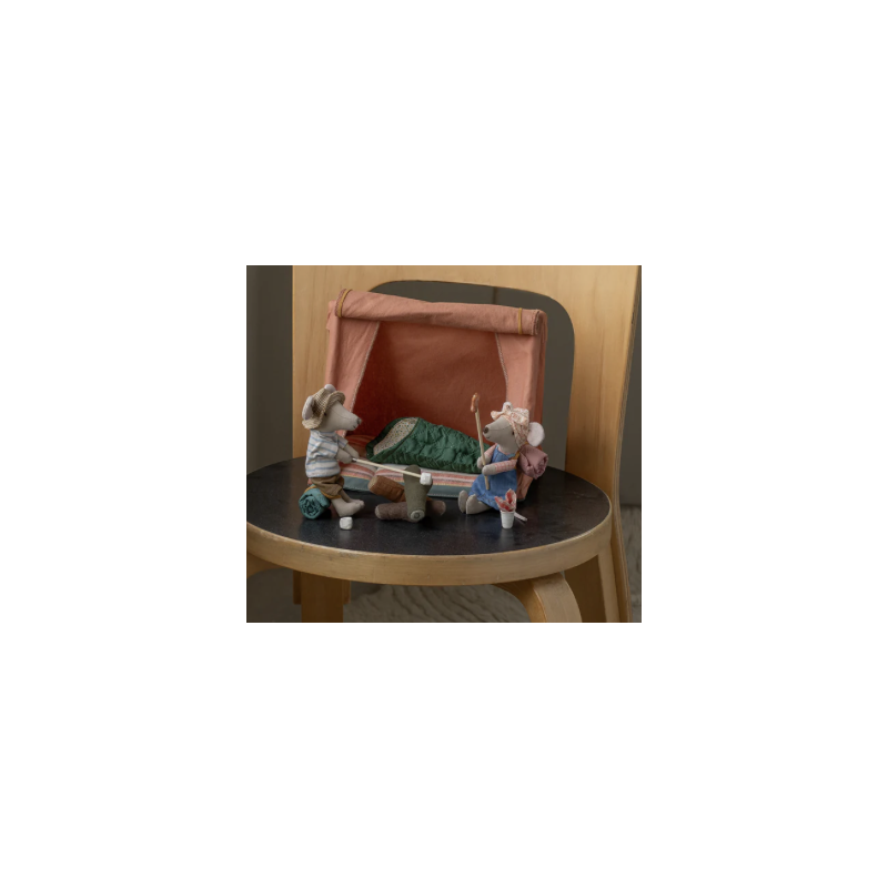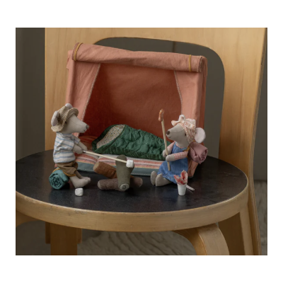 Cette souris,aux mains aimantées, est bien équipée pour une randonnée en pleine nature. Habillée pour des jours de marche, elle a apporté son sac de couchage pour les nuits à la belle étoile. Ajoutez d'autres accessoires de la collection randonnée