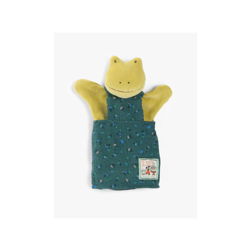 Perlette la grenouille, en velours au doux visage brodé, vêtue de sa jolie salopette fleurie, s’anime en marionnette. Elle donne vie à de tendres histoires à partager en famille.