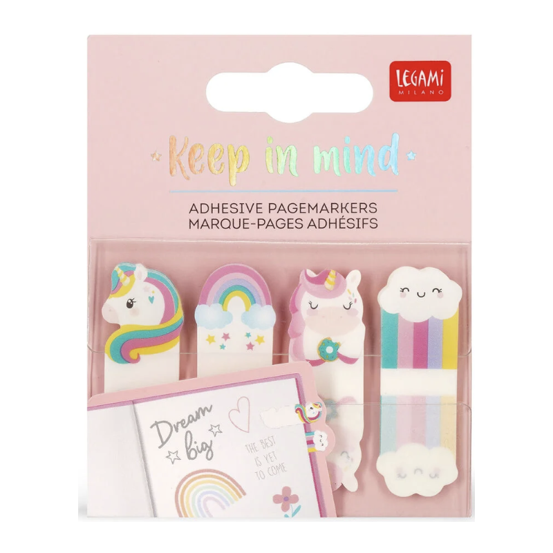 Pourquoi s’évertuer à se souvenir de tout lorsque l’on peut simplement se souvenir d’acheter les Marque-Pages Adhésifs - Keep in Mind - Unicorn de Legami et leur laisser faire le boulot ? Ce set de 80 étiquettes transcriptibles et amovibles en papier est pensé pour prendre des notes et les coller directement sur les livres et les cahiers, afin qu’elles vous sautent immédiatement aux yeux !