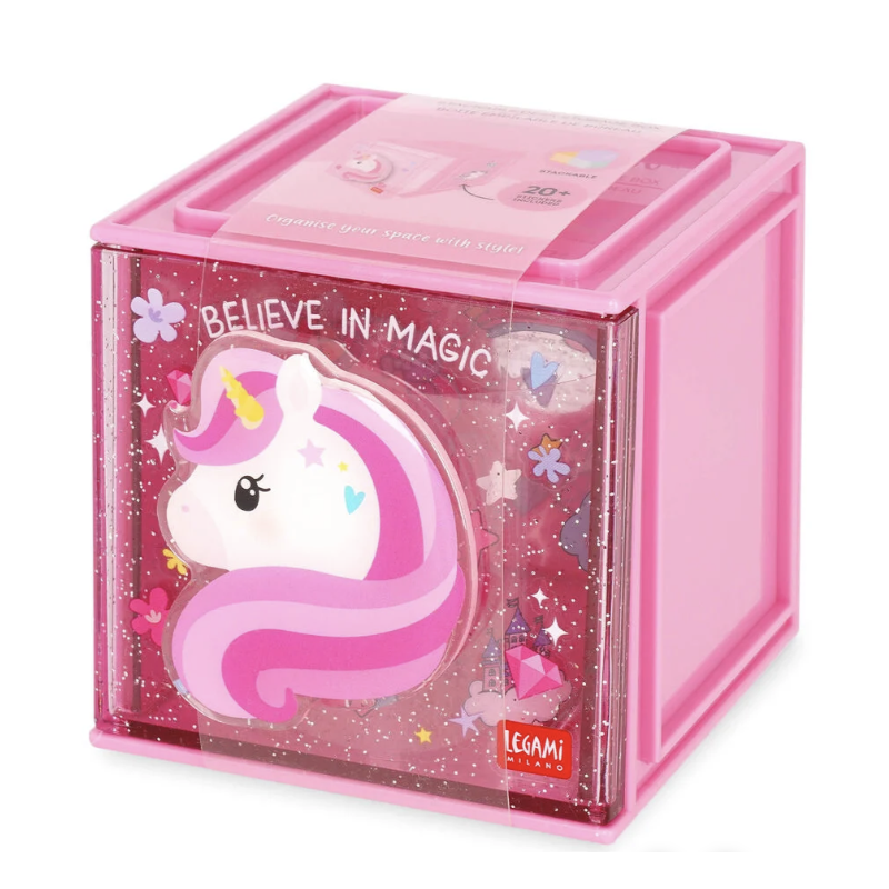 Empiler, associer, dissocier, révolutionner ! La Boîte Empilable de Bureau - Cutie Cube - Unicorn de Legami n'attend qu'à être associée à d'autres pour créer le parfait organiseur multifonction de bureau pour vos fournitures. Collectionne-les toutes : plus il y a de boîtes, plus il y a de combinaisons !