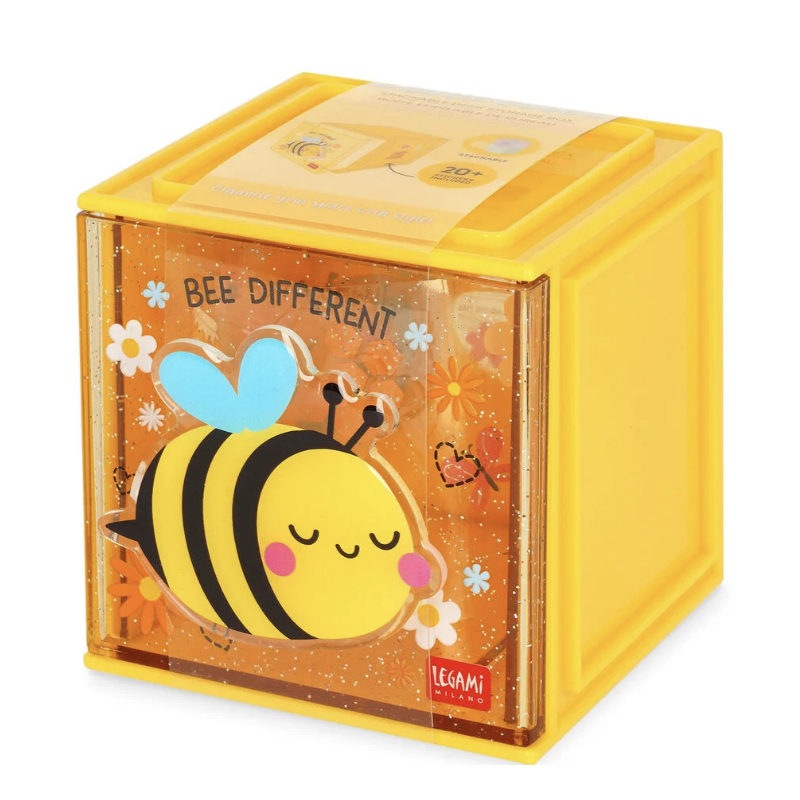 Empiler, associer, dissocier, révolutionner ! La Boîte Empilable de Bureau - Cutie Cube - Bee de Legami n'attend qu'à être associée à d'autres pour créer le parfait organiseur multifonction de bureau pour vos fournitures. Collectionne-les toutes : plus il y a de boîtes, plus il y a de combinaisons !