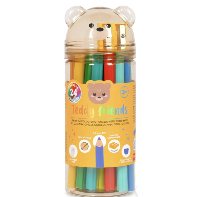 Si tu veux colorier sans aucune limite, nous te donnons un coup de patte ! Choisis le Set de 24 Crayons de Couleur avec Taille-crayon - Teddy Friends de Legami. 24 crayons en forme d'ourson pour compléter chaque dessin avec des couleurs assorties et uniques.