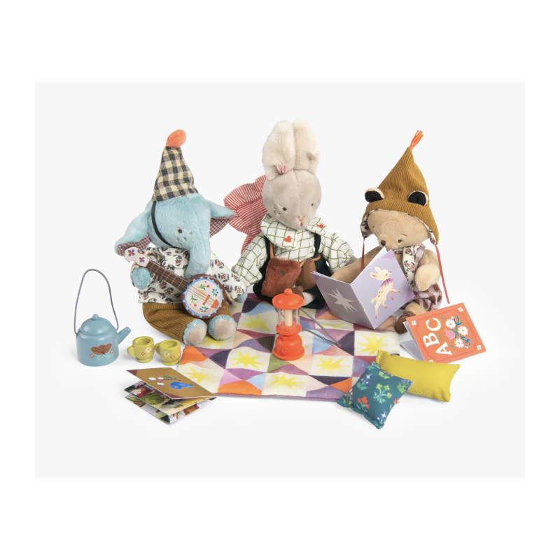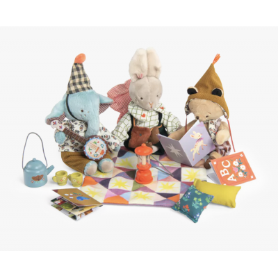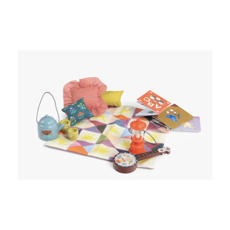 Léon a enfilé ses pantoufles, et chaussé ses lunettes pour lire la gazette. Hop, une petite bûche dans le poêle : que l’on est bien dans sa maison au coin du feu ! Contenu : Rocking-chair, poêle à bois, 3 bûches, tapis. Personnages vendus séparément.