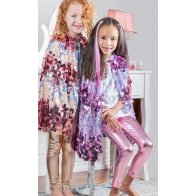 La cape est ornée d'un délicat col en tulle, ajoutant une touche douce et élégante aux paillettes audacieuses. Une fermeture Velcro pratique au niveau du cou assure un ajustement sûr et confortable. Que ce soit pour un costume, un spectacle ou simplement pour ajouter un peu de glamour aux aventures du quotidien, cette cape apportera une élégance enchanteresse à la garde-robe de votre tout-petit.