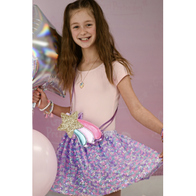 Nous avons ajouté une nouvelle jupe de paillettes violettes de fête éblouissante à notre collection ! Cette jupe accrocheuse présente une combinaison vibrante de paillettes violettes, roses et bleues, créant un affichage de couleurs envoûtant. La riche ceinture en satin lilas ajoute une touche d'élégance et assure un ajustement confortable. Laissez vos enfants tourner et danser en toute confiance dans cette superbe jupe à paillettes violettes.