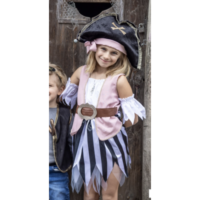 Voici notre robe swashbuckling Kira the Pirate Girl, le trésor ultime pour votre petit boucanier aventureux ! Préparez-vous à partir à l'aventure en haute mer avec cet ensemble captivant qui allie style audacieux et flair féminin.