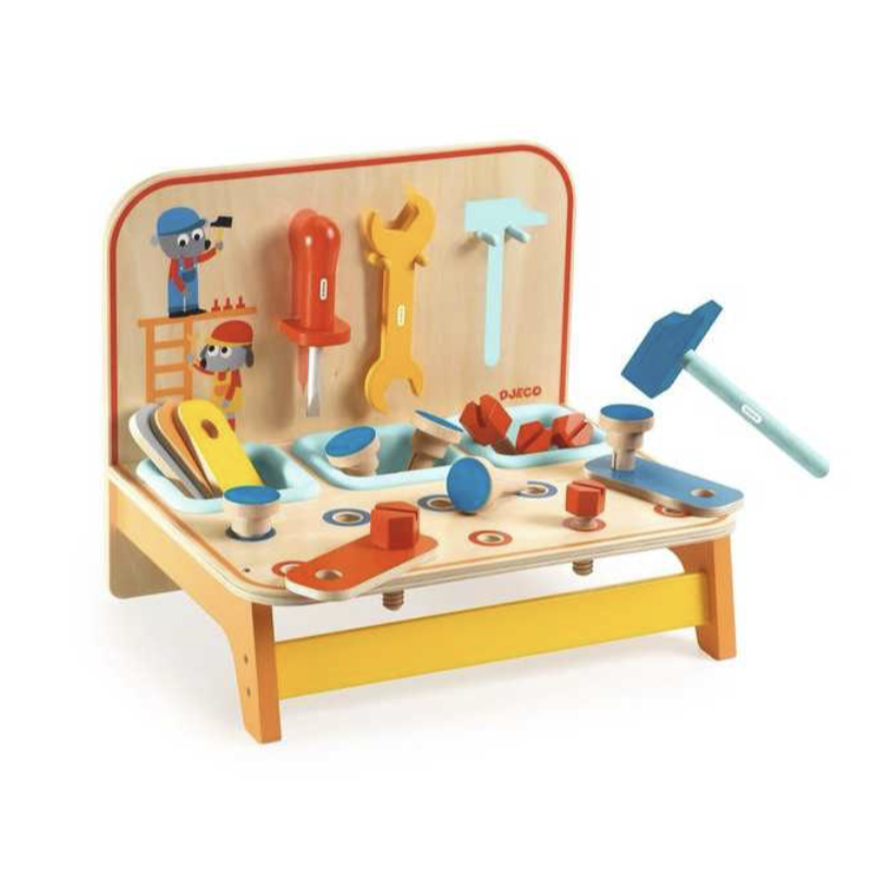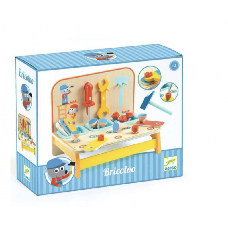 Découvrez le coffret Bricotoo de Djeco, un établi avec des accessoires sur le thème du bricolage permettant aux enfants, dès 3 ans, d'imiter les gestes des grands.