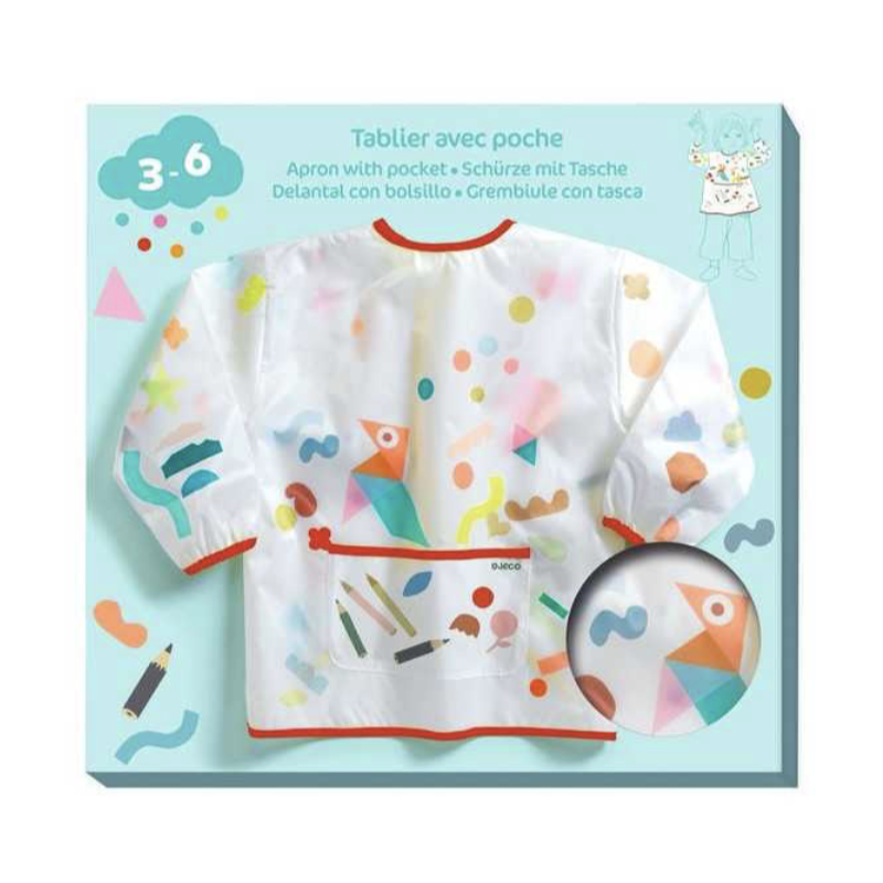 Découvrez le tablier avec poche Gommettes et crayons de Djeco, un accessoire indispensable conçu spécialement pour les enfants de 3 à 6 ans. Un tablier qui protège les vêtements des petits artistes, leur permettant de créer en toute liberté, avec une grande poche pour y ranger leur petit matériel.