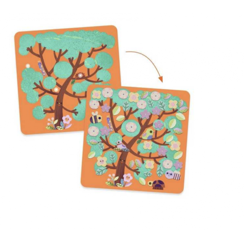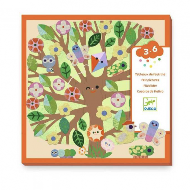 Découvrez le coffret Tableaux de feutrine La ronde des saisons de Djeco, une activité de collage avec de la feutrine autocollantes pour les enfants de 3 à 6 ans.