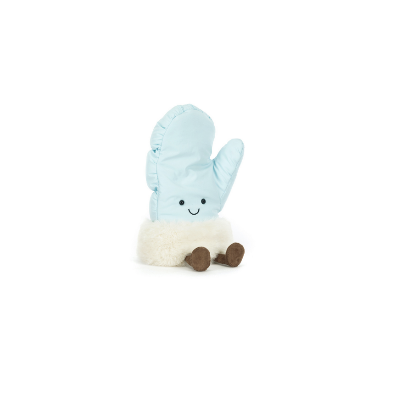 Amuseables Mitten est une douce et chaude moufle qui a perdu sa jumelle. Si vous la voyez errer seule dans la neige, n'hésitez pas à l'inviter passer les fêtes à vos côtés !