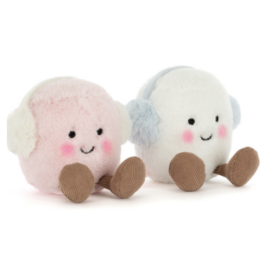 Amuseable Toastie Pink and White Marshmallows sont tout bonnement inséparables. Ils partagent tout et ce à toutes les saisons ! Pour faire face au froid hivernal, ils se sont tous les deux vêtus de leur cache oreille !