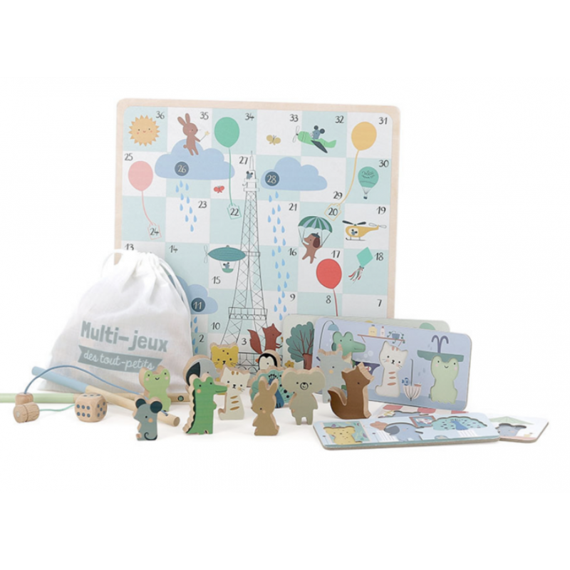 Les adorables animaux en bois de notre coffret multi-jeux en bois, illustrés par Sarah Betz, vont faire craquer votre enfant dès 2 ans ! Ces petits personnages tout mignons peuvent être utilisés dans les 4 jeux - le jeu de l’oie, le jeu des échelles, la pêche à la ligne, et le loto. Chaque partie devient ainsi une aventure amusante, idéale pour stimuler la motricité, la logique, et surtout partager des moments complices en famille. Pour lequel allez-vous craquer ?