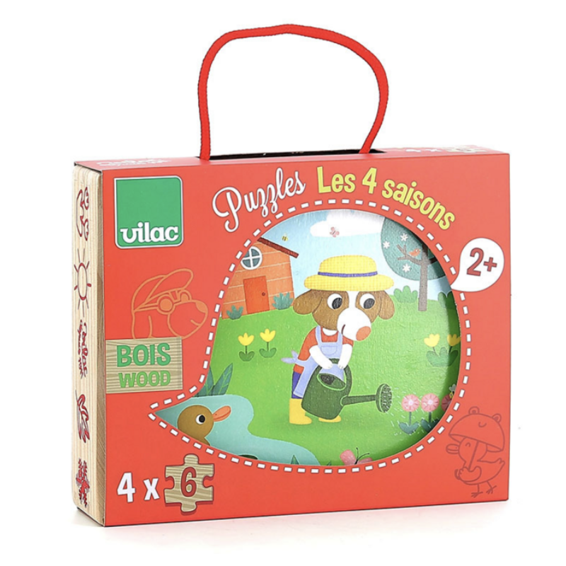 Ce coffret de 4 puzzles en bois, joliment illustré par Mélusine Allirol va solliciter la concentration et la pensée logique de votre enfant, tout en développant sa motricité fine.