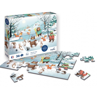 Ce puzzle fabriqué en France est destiné aux enfants à partir de 4 ans. De dimension 33 x 23 cm avec des pièces de 5.5 x 3.8 cm, la qualité d’impression avec des couleurs lumineuses et subtiles, des découpes précises et un matériau résistant avec une épaisseur de 2.1 mm garantiront une expérience agréable dans la réalisation de ce puzzle.