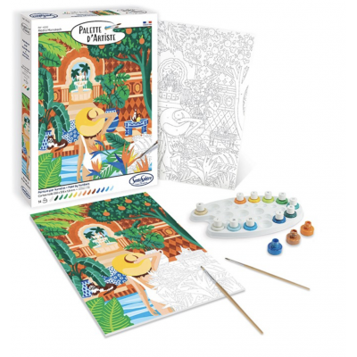 Plongez dans l’atmosphère apaisante d’un riad marocain avec la peinture par numéros Palette d’Artiste – Riad à Marrakech. Cette œuvre, inspirée de l’architecture traditionnelle et baignée de couleurs chaudes, évoque un moment de détente estival propice à l’évasion. Un moyen créatif d'apporter une touche marocaine chez vous !