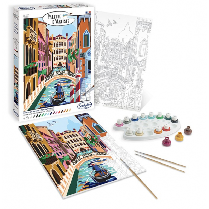 Laissez-vous porter par l’éclat des couleurs avec la peinture par numéros Palette d’Artiste – Venise. Faites apparaître, couleur après couleur, ses canaux et ses ponts emblématiques, ses bâtiments aux teintes chaudes, pour recréer la magie de cette ville romantique.