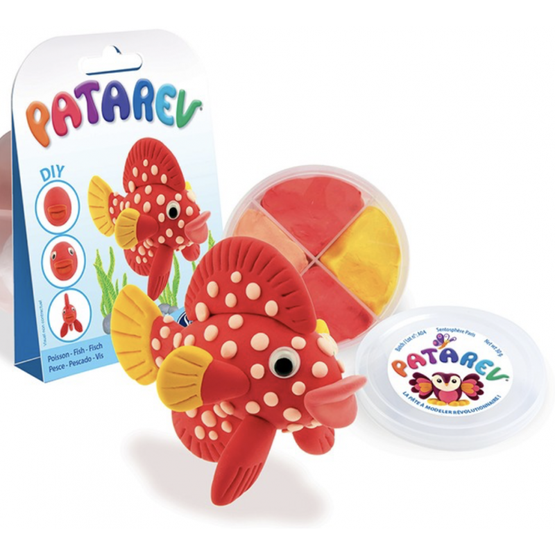 Suivez le pas à pas imprimé à l'intérieur du coffret pour créer un poisson en Patarev. Il n'y a pas besoin de faire de mélange, toutes les couleurs nécessaires sont fournies dans le pot à compartiments !