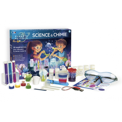 Ce laboratoire scientifique permet aux enfants de comprendre facilement la chimie en réalisant 30 expériences grâce à 12 matières premières différentes.