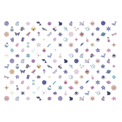 Cette pochette contient plus de 150 stickers d'ongles (nail art) à coller sur les ongles des petits comme des grands. Certains brillent !