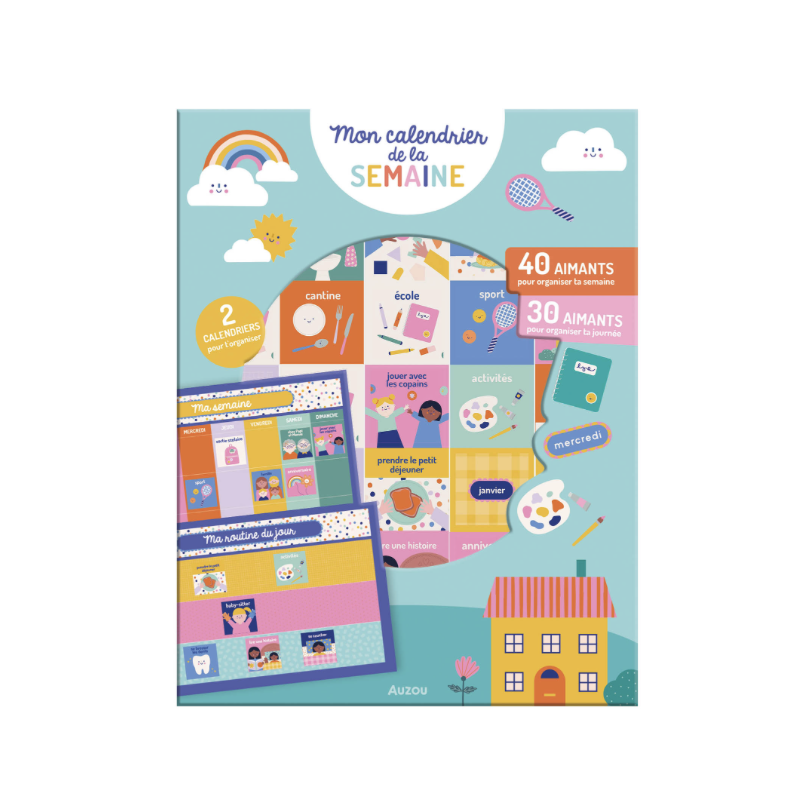 Organiser sa semaine et créer sa routine n'a jamais été aussi simple ! Découvre les 70 aimants pour t'organiser et apprendre les jours, les mois, le temps qu'il fait, les émotions, les gestes du quotidien et à se repérer dans l'année !
