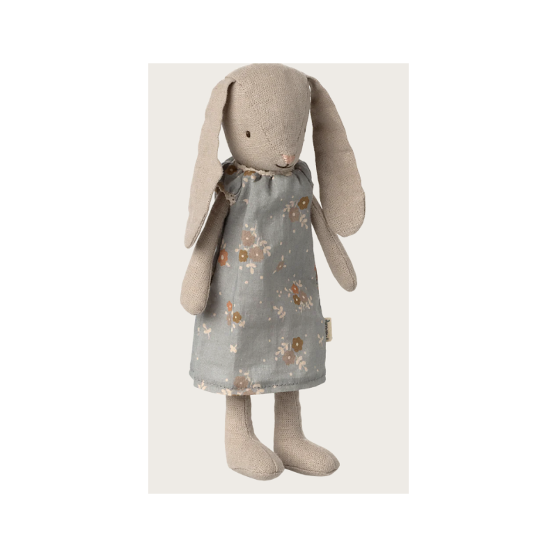 La célèbre lapine ballerine Maileg est prête pour son cours de ballet. Elle porte un body, une jupe en tulle et un joli bandeau à pompon, autour de ses oreilles basses.