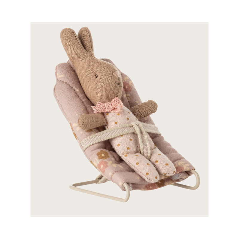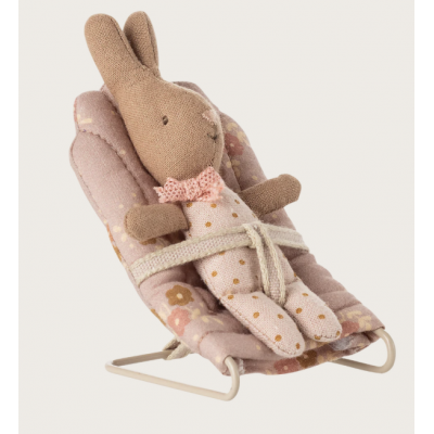 Avec ce transat bébé, il est facile d'endormir vos lapins MY et bébés souris. La base en métal est recouverte d'un très joli tissu, pour une assise confortable et chaleureuse.