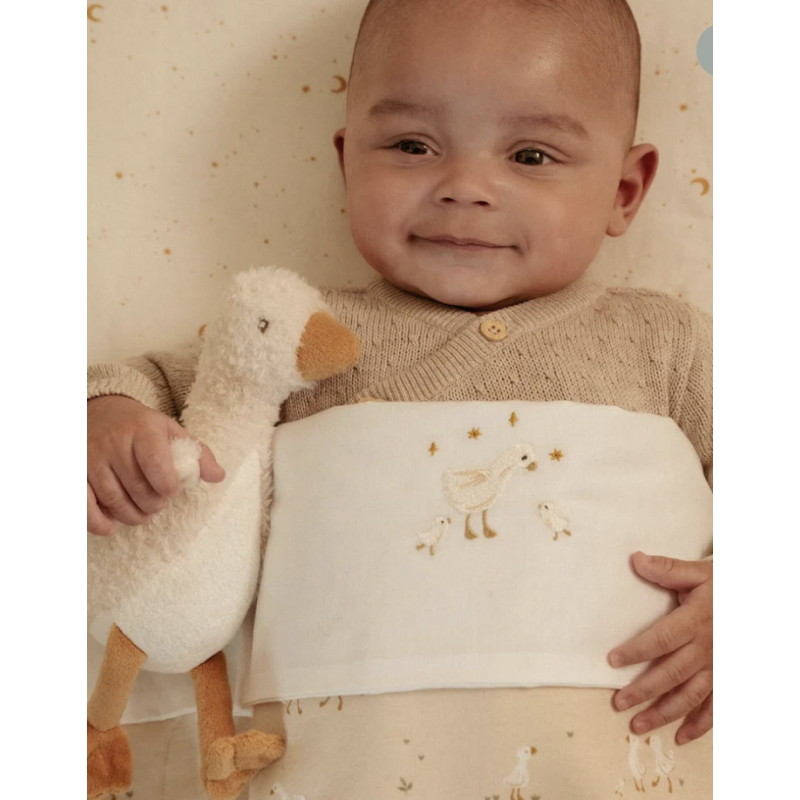 Petit par la taille, grand par les câlins ! Ce cher Little Goose est toujours prêt pour un câlin chaleureux. Avec ses ailes douces et son pelage duveteux, il devient rapidement le compagnon préféré de votre petit. Parfait pour être tenu, emporté partout et câliné tendrement. Un compagnon fidèle pour chaque aventure, des premiers pas aux doux moments de sommeil.