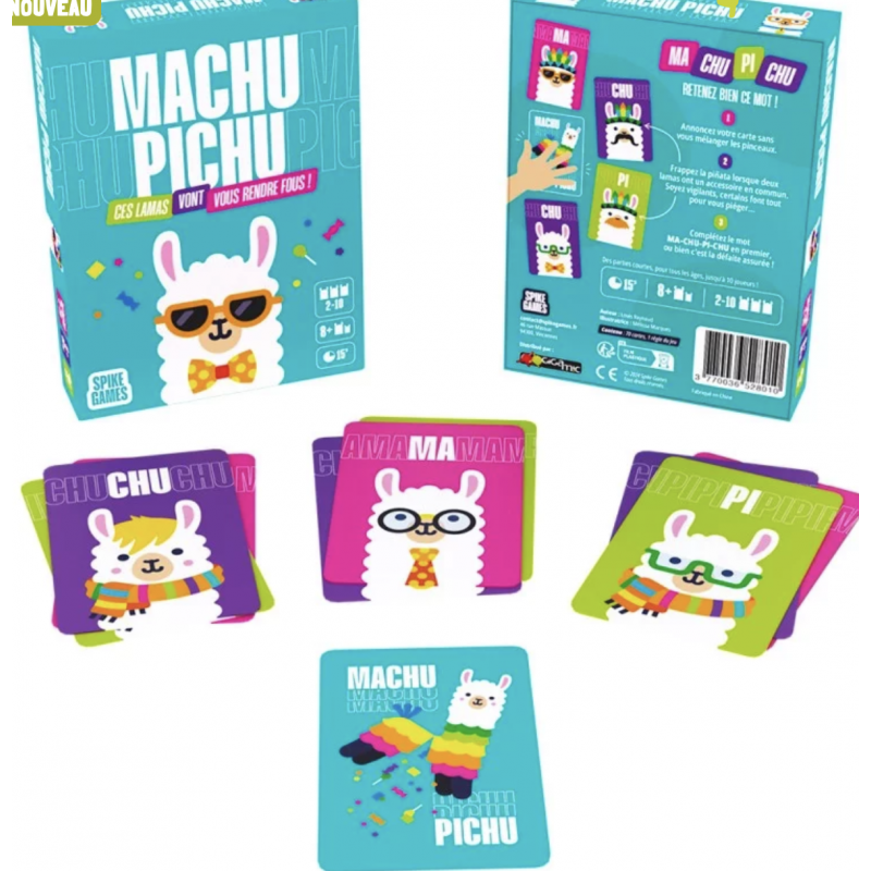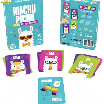 Machu Pichu est un jeu d’ambiance rapide et délirant qui mettra vos réflexes et votre observation à rude épreuve ! Tentez de vous débarrasser de toutes vos cartes en repérant les lamas avec un accessoire en commun. Un lama avec un poncho et des plumes sur la tête ? Oui, dans Machu Pichu, ça existe !