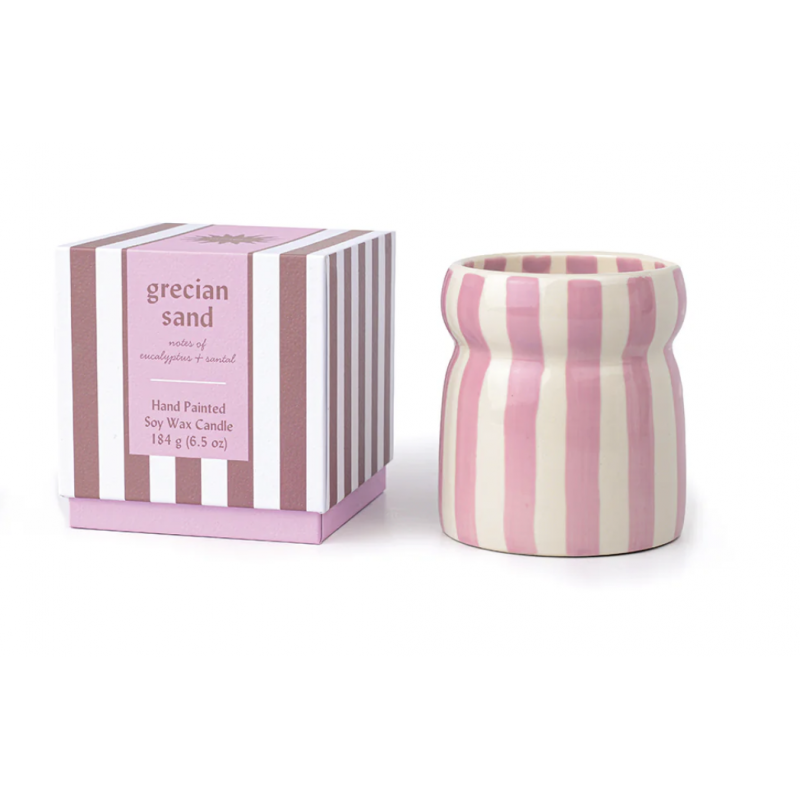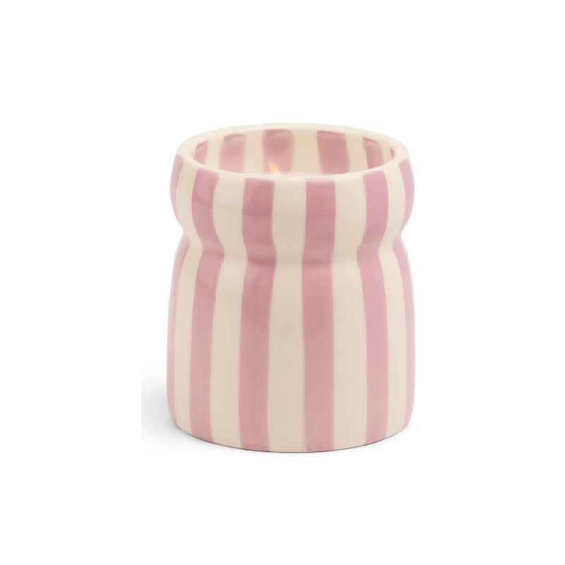 Laissez-vous transporter sur les plus belles plages du monde avec notre collection Cabana, chacune conçue pour évoquer les senteurs apaisantes et transformatrices des destinations côtières. Ces bougies peintes à la main, inspirées de parapluies rayés, mesurent 195 g et présentent une forme pincée unique.