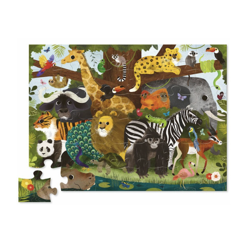 Le puzzle et la boîte sont fabriqués avec 70% de matière recyclée. Impression avec des encres à base de soja et d'eau.