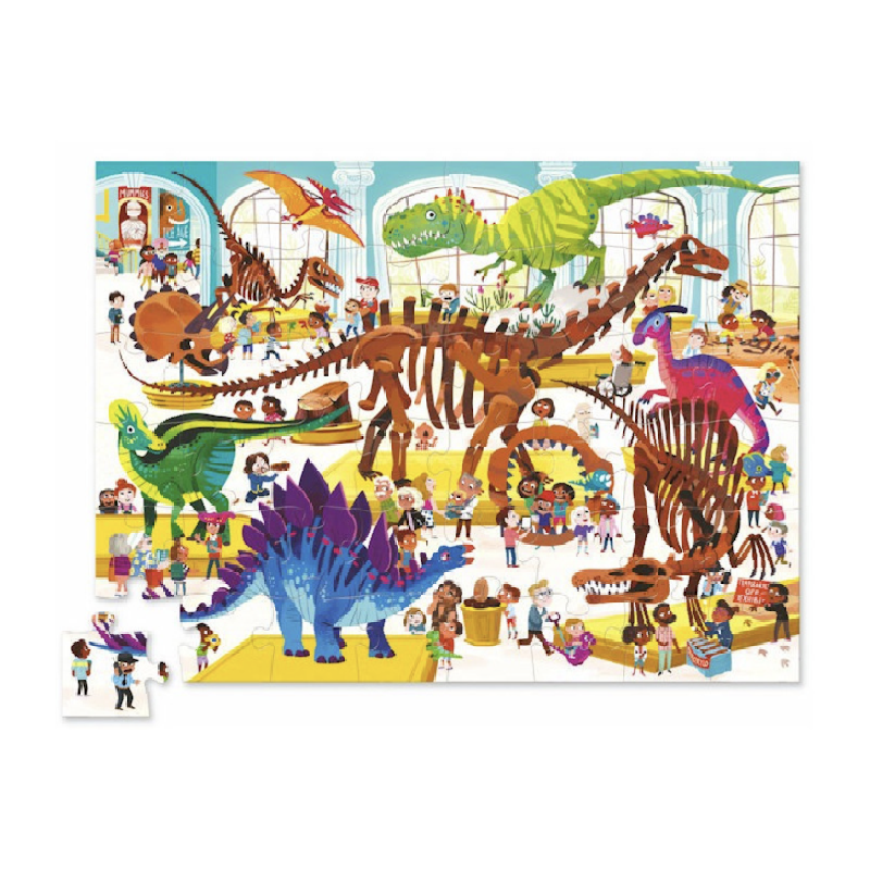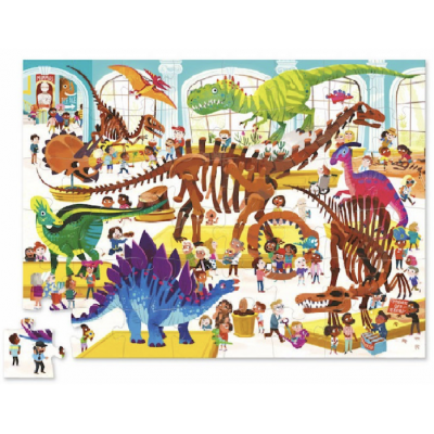 Un fantastique puzzle de 48 pièces où l'enfant s'immisce avec plaisir dans l'atmosphère passionnante d'une visite au Musée d'Histoire Naturelle. Le squelette du diplodocus est vraiment impressionnant !