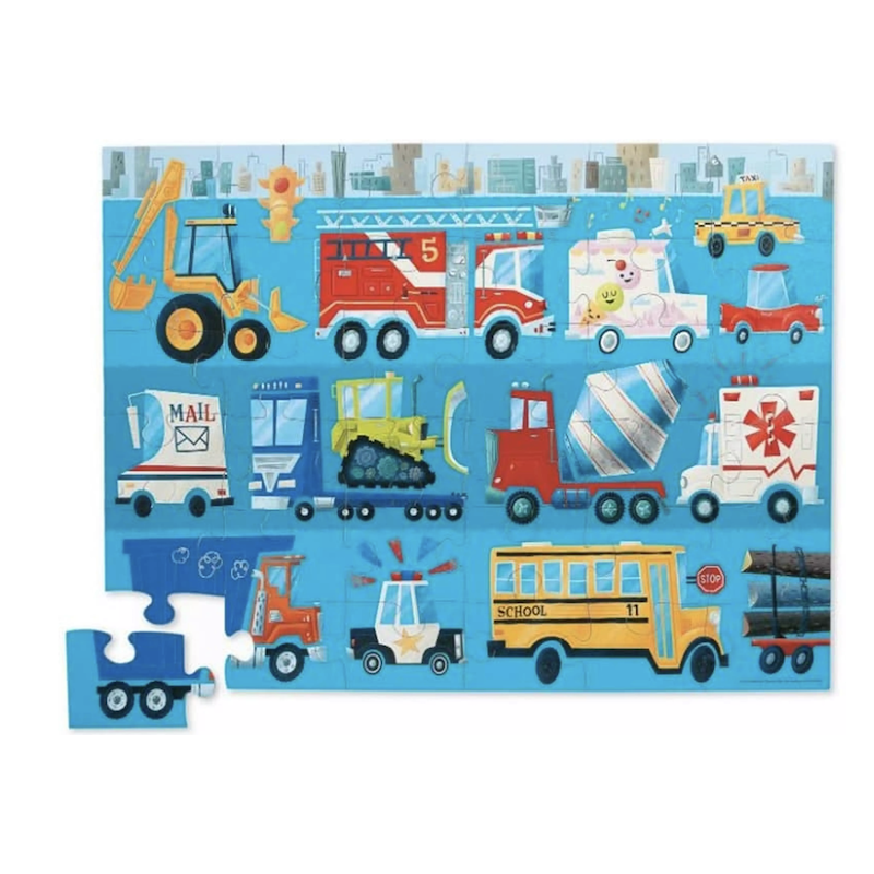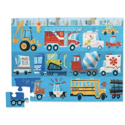 Le puzzle Véhicules, montre différents types de véhicules tels qu'un camion de pompiers, une voiture de police, une ambulance... Pouvez-vous nommer tous les véhicules? Ce puzzle se compose de 36 grandes pièces de puzzle et mesure 50 x 69 cm une fois réalisé.
