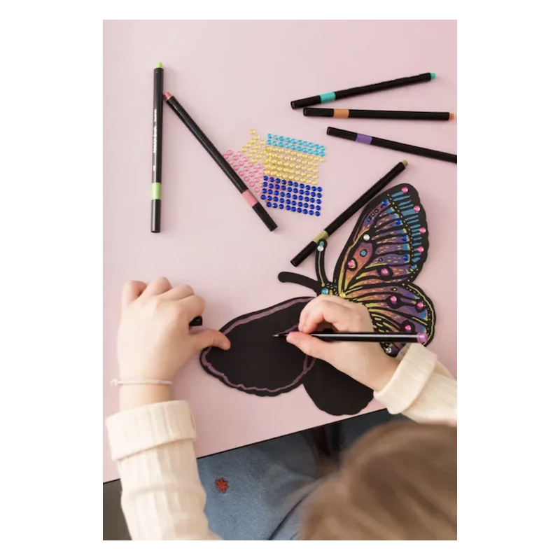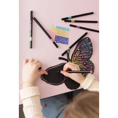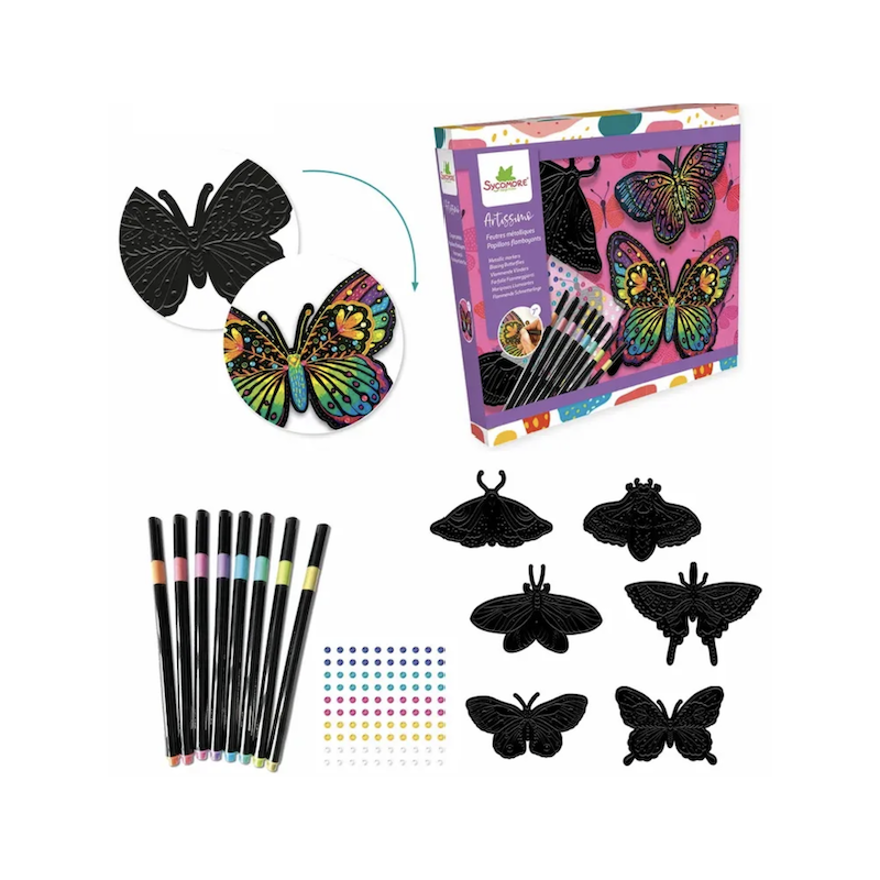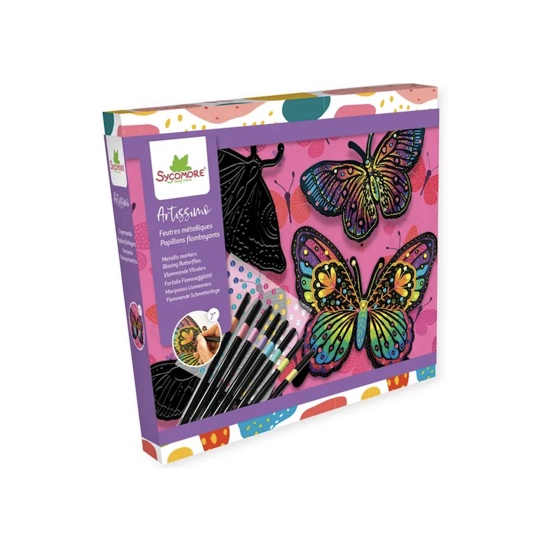 Éveillez votre créativité avec les tableaux feutres métalisés 'Papillons flamboyants' de Sycomore. Cet ensemble artistique permet de réaliser des œuvres éclatantes grâce à son effet métallisé unique.