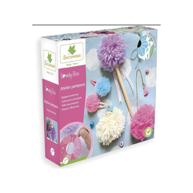 La Lovely Box Petit de Sycomore est une boîte créative pour enfants de 7 ans et plus. Elle permet de réaliser de magnifiques créations en laine tout en couleur : porte-clés, élastique pour cheveux, marque page et pleins d'autres. Le contenu de la boîte comprend 6 cartes rondes pour réaliser les pompons, des pelotes de laine (3 coloris), des perles coeur, 1 anneau de porte-clés, 1 élastique pour cheveux et 1 livret d'instructions. La philosophie de Sycomore est de proposer des jouets de qualité mettant en scene les parents et les enfants pour des moments de partage, d'échange et de bonheur. Les produits ont pour vocation de répondre au développement de l'imaginaire et aux jeux d'imitation de l'enfant.