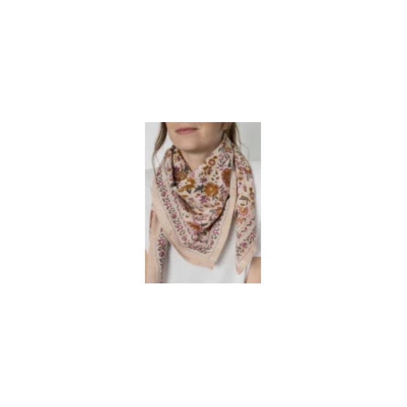 Un grand carré coloré et imprimé à la main sur un tissu doux au toucher peau de pêche qui enveloppera votre cou pour un look bohème, idéal à toute saison !