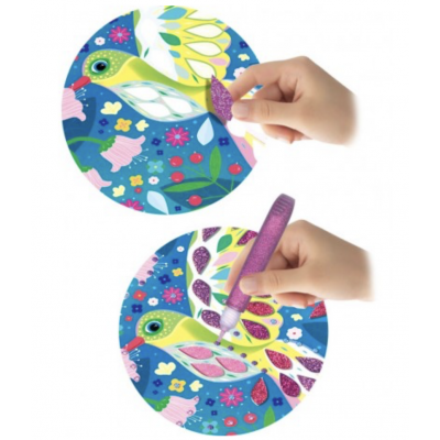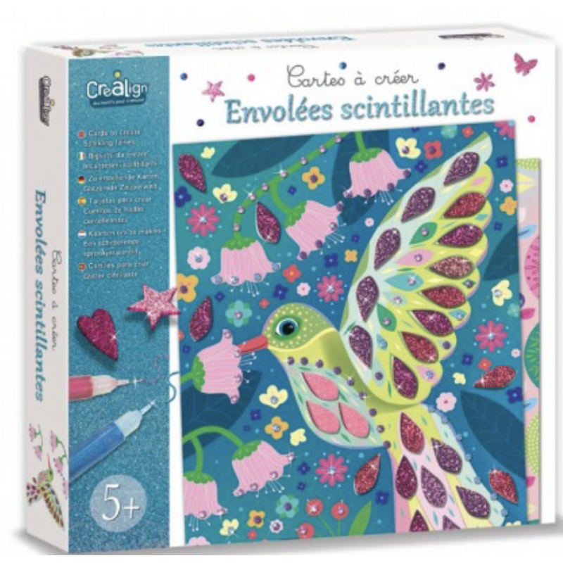 Les enfants pourront embellir et faire scintiller les cartes à l'aide des formes pailletées et des stylos à encre brillante.