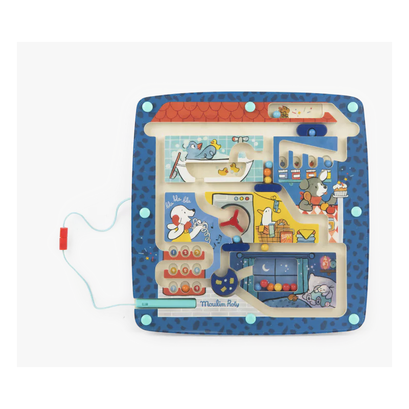 • Grâce au crayon aimanté, déplacez les éléments magnétiques à travers le parcours d'obstacles pour aider les billes colorées à trouver leur chemin. Ce labyrinthe est idéal pour apprendre à compter et découvrir les couleurs en s'amusant avec Puce & Pilou