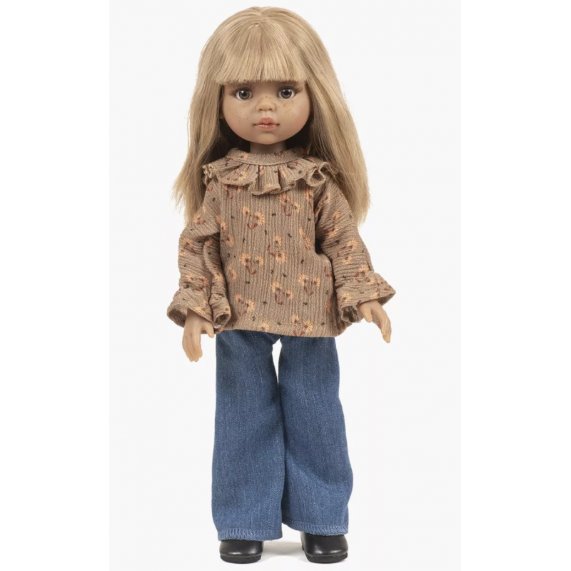 Ensemble top blouse Rosalie en crépon et jean en denim pour poupées Amigas 32cm. (Poupée vendue séparément )