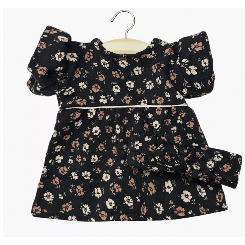 Robe Daisy et son headband à noeud rond en viscose avec passepoil pour poupées Minikane Gordis 34 & 37cm.