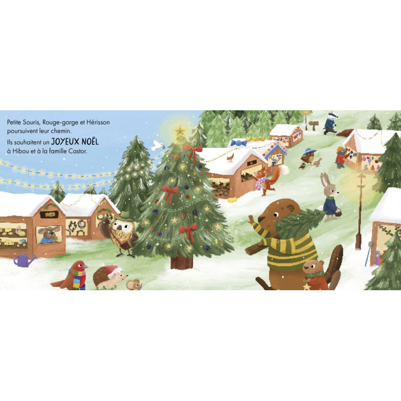 Petite Souris prépare ses cadeaux. Elle les emballe avec du joli papier et de beaux rubans brillants. Elle se dépêche, car elle ne veut pas être en retard à la fête de Noël chez Grand-Mère. En chemin, elle rencontre des amis qui ont besoin de son aide. Alors, elle leur offre l’écharpe qu’elle a tricotée, le gâteau qu’elle a préparé, un savon qui sent bon… Mais quand vient le moment d’échanger les cadeaux chez Grand-Mère, Petite Souris n’a plus rien à offrir… sauf le plus beau cadeau du monde : son amour pour sa Grand-Mère ! Un album sur la joie du partage, où l’on découvre que « C’est super chouette de recevoir un cadeau… Mais faire plaisir aux autres, c’est encore mieux ! »