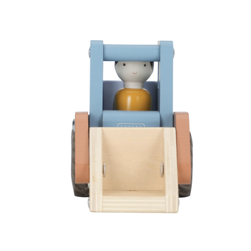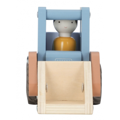 Sur le chantier, il y a toujours du travail à faire ! Avec ce bulldozer en bois, vous soulevez sans effort des charges avec la grande pelle. Le mini bulldozer robuste roule en douceur grâce aux roues en caoutchouc et est livré avec un ouvrier du bâtiment en bois. Que vous jouiez à l'intérieur ou à l'extérieur, ce bulldozer garantit des heures de plaisir. Conduisez jusqu'à la colline de sable, creusez un trou profond et déplacez tout le sable avec la grande pelle. Fini de creuser ? Combinez ce bulldozer en bois avec les autres véhicules de construction pour encore plus d'aventures sur le chantier !